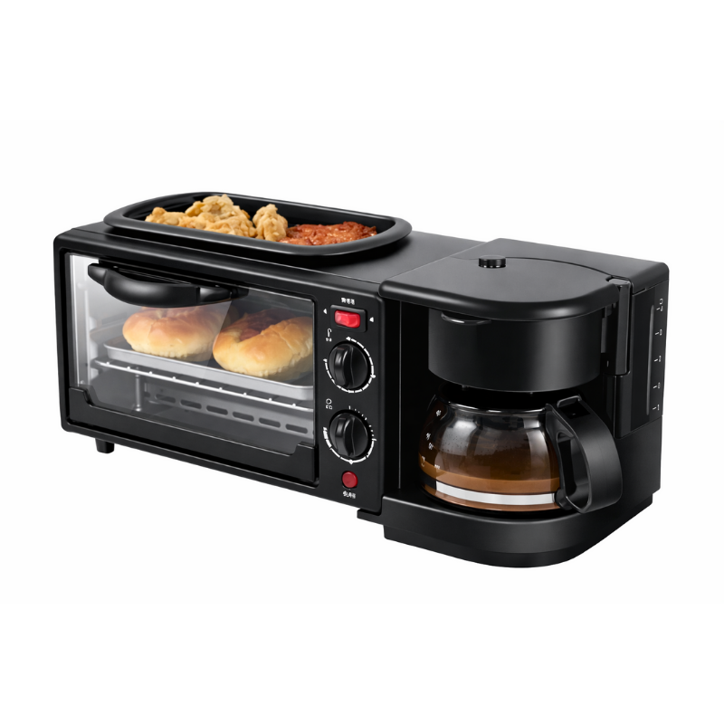 Un aparat de mic dejun 3-in-1 electric care combină funcțiile de cafetieră, prăjitor de pâine și grătare antiadherent este o soluție versatilă și practică pentru începutul perfect al zilei.